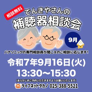 でんきやさんの補聴器相談会9月開催のお知らせ